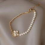 Винтидж флорална гривна с перли и злато