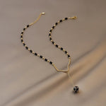 Винтидж огърлица с черни мъниста и капковиден висулка
