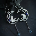 Бохо обеци от синя циркония с котка от сребро