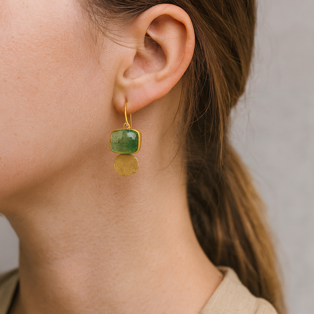 Винтидж зелени обеци от стъкло с златисти детайли