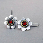 Винтидж обеци "Маргаритка" от червено стъкло