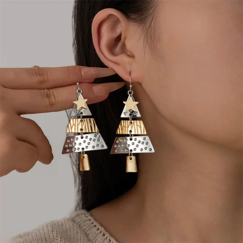 Обесени обеци във форма на коледно дърво от смесен метал