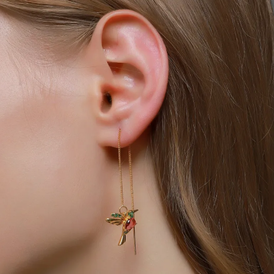 Завъртящи се обеци с вградена циркония и цвете на богатството